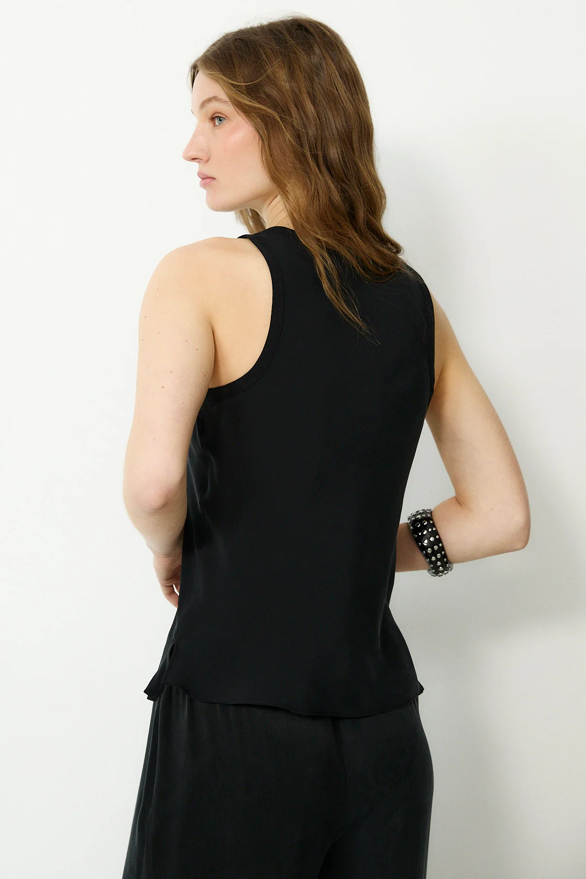 Minimal and refined, the Berta top is an effortless wardrobe essential with a softly fluid feel. Cut to a relaxed sleeveless silhouette, it features a clean scoop neckline and gently flared hem that drapes beautifully on the body. Designed for versatile styling, it works just as well worn loose over tailoring as it does tucked into high-waisted skirts or trousers.