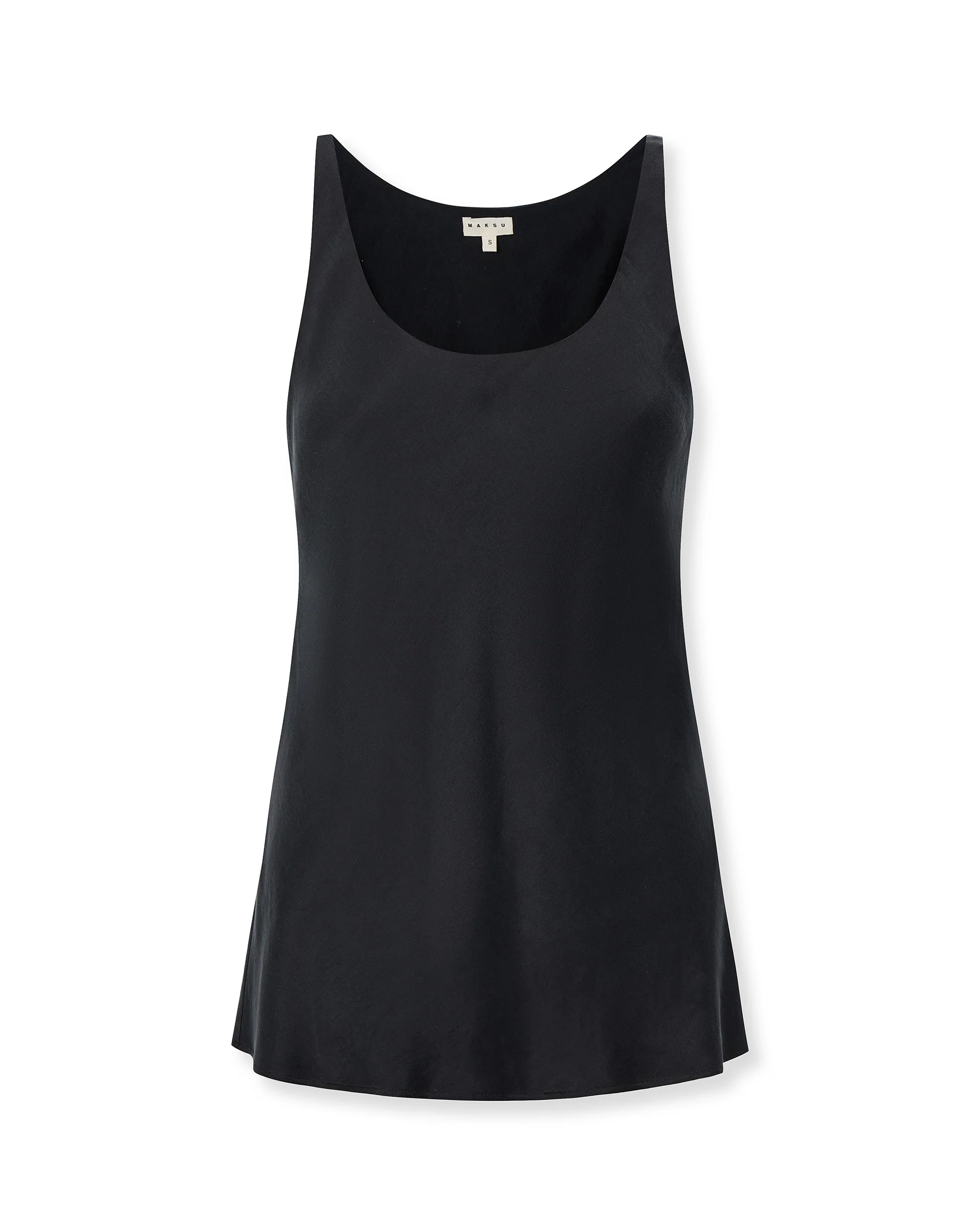 The Thyssen top in black is a strappy, elegant, and timeless design. Made from cupro, a soft, satin-like fibre derived from cotton, it features a minimalist straight cut and a wide, flattering round neckline. This versatile wardrobe staple pairs effortlessly with everything and never goes out of style.